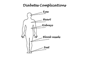Diabetes can also lead to a type of nerve damage called diabetic neuropathy. A common complication is foot problems such as sores and ulcers, and unattended foot ulcers can eventually lead to tissue death and require amputation. This can be prevented through early detection and treatment. It is therefore important to have good foot care and to stay alert for signs and symptoms of diabetic neuropathy. Have a comprehensive foot examination by your doctor at least once a year.2,13 Click here to read more about diabetic neuropathy.